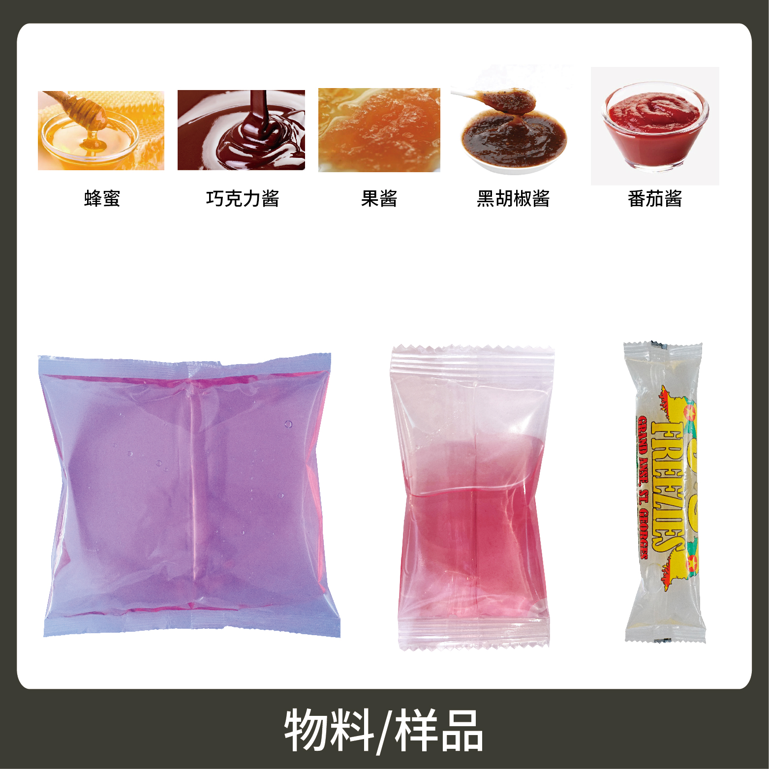 適用于食品、醫(yī)藥、化工、化妝品行業(yè)中液體、醬料物品的計(jì)量包裝,如:碎碎冰、黑胡椒、辣椒醬、果醬、番茄醬等。